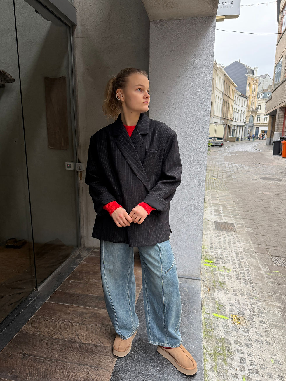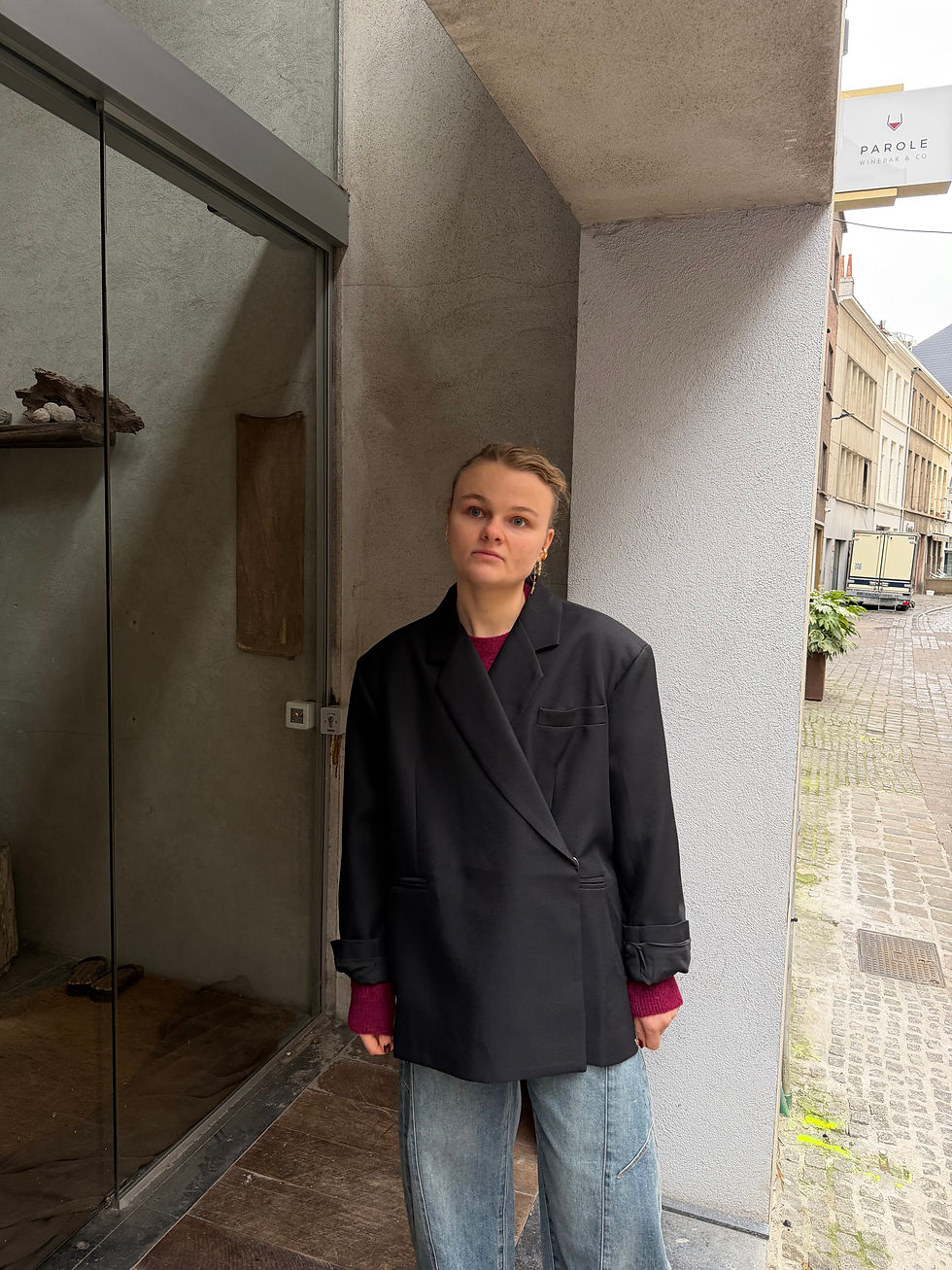 Langs binnen 1 afgesloten klein zakje met rits